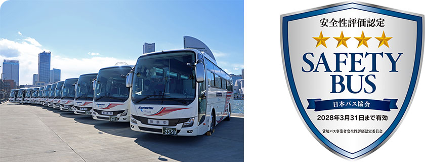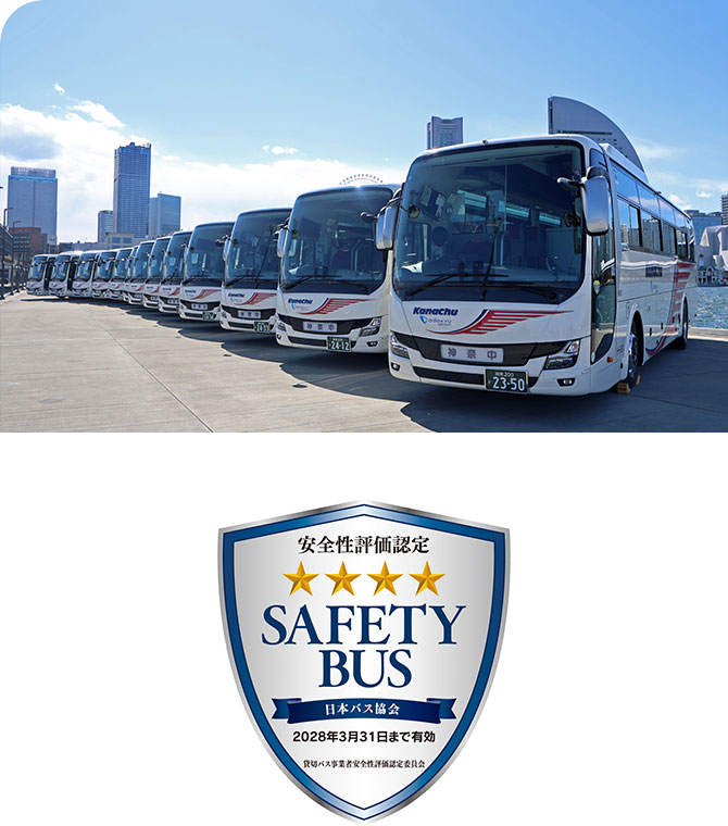 なお、神奈中観光(株)は2025年12月、日本バス協会の貸切バス事業者安全性評価認定制度において、現時点で最高位となる『四ツ星』を取得しました。この制度は、貸切バス事業者の安全対策の取り組み状況を評価・認定することで、利用者や旅行会社が安全性の高い事業者を選びやすくすることを目的に、日本バス協会が実施しているものです。